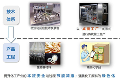 1)將超過百噸的反應(yīng)裝置縮小至幾十升,以“桌面工廠”的實(shí)現(xiàn)傳統(tǒng)化工生產(chǎn),大幅提升過程安全性,節(jié)約生產(chǎn)用地;